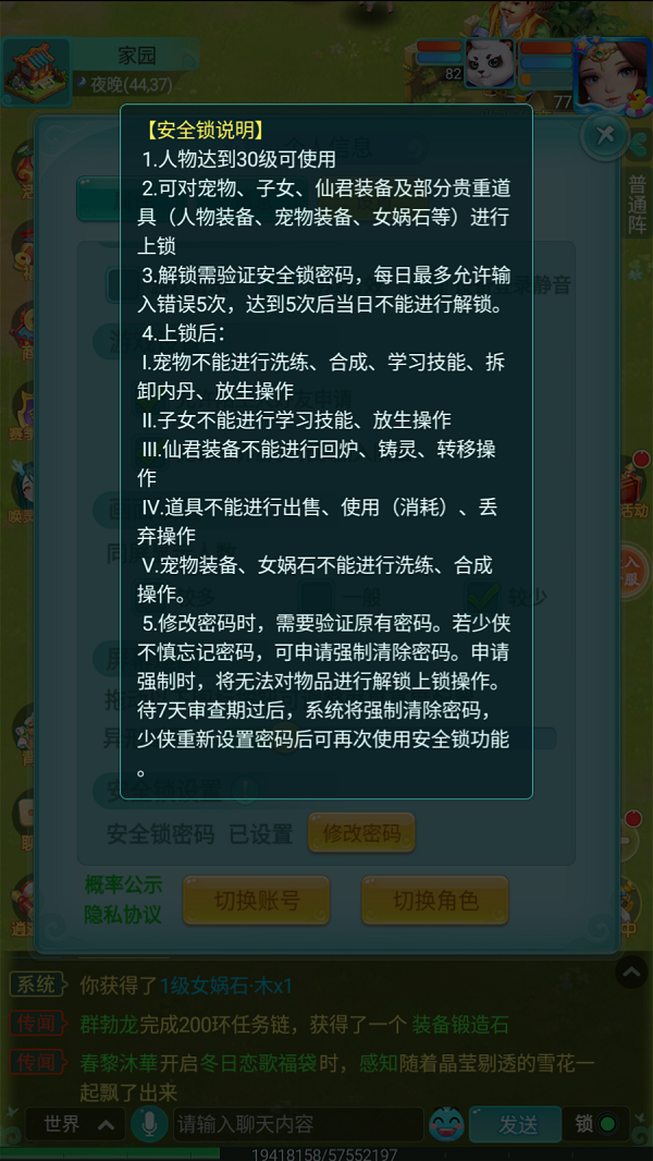 在《逍遥情缘》手游中努力成长的少侠,想必都希望自己的成果能得到最坚实的守护。保护账号安全的最佳利器,便是游戏内置的“安全锁”功能。开启安全锁,即使账号不慎被他人登录,你的贵重物品也能安然无恙! 【设置安全锁密码】 你可以在个人信息界面的“设置”中找到安全锁设置选项。在设置安全锁密码时,需使用6-12位字母或数字的组合,确保足够安全。若需要更换密码,只需记得旧密码即可随时修改。 如果不慎遗忘了旧密码,可以点击“忘记密码”申请强制清除安全锁。此操作后,系统将进行为期7天的审查。审查期结束后,现有的安全锁密码会被强制清空,届时就能重新设置密码了。 【保障贵重物品安全】 安全锁密码会保护账号上的哪些东西?包括宠物、子女、仙君装备以及部分贵重道具(装备、女娲石等)都可以锁定。一旦锁上,想要对这些东西进行操作时,就需要先输入密码了。 解锁安全锁密码时,如果一天中输入错误密码达到5次,那么当天就无法解锁了,这有效地防止了不良分子对账号上贵重物品的破坏。为了自己的账号安全着想,快去设置安全锁密码吧! 编辑:月光下完美