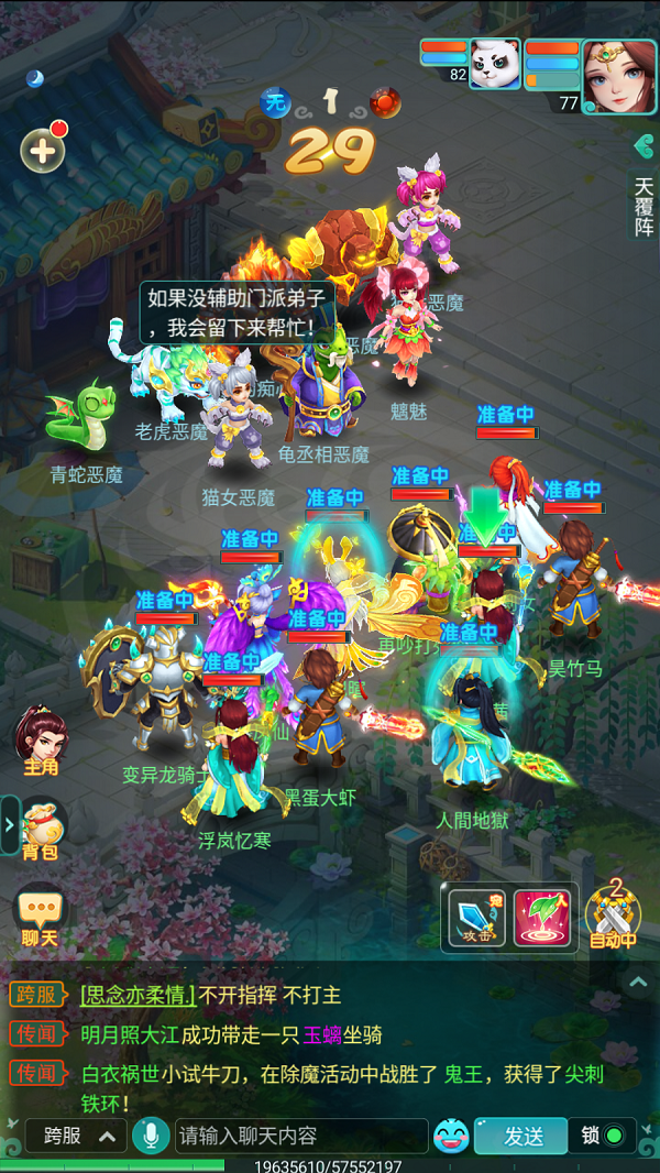 《逍遥情缘》手游里有什么任务是必做的?我想除魔任务绝对可以算一个。毕竟这是一个性价比很高的任务,难度不高奖励却不差,许多少侠都喜欢每天做,所以组上队伍也不难。总之,今天我们就来了解一下这个除魔任务吧。 【游荡妖魔 恶念所化】 逍遥世界的大地上常常有妖魔在游荡,比如贪欲魔、暴戾魔等等,它们代表了人心里的各种恶念,这便是除魔任务里要铲除的怪物了。你可以加入一个除魔队伍,开始愉快的除魔之旅。 除魔任务中的怪物难度并不高,所以在战斗中我建议选择更加高效的方式来快速清理。培养专门的日常宠或群法宠可以最高效率地打击怪物,迅速地结束战斗,将奖励收入囊中。 【享受双倍 奖励丰厚】 除魔任务属于日常任务,可以享受到双倍点数的加成,所以挑战之前别忘了领取足够的双倍点数。而且就算每天的40次除魔任务挑战完了,也可以消耗双倍点数来继续获得奖励。 除魔的怪物主要是由各种心魔构成,它们天生就惧怕辅助门派。所以如果你在队伍里加入一个辅助门派的弟子,可以在战斗开始时立即吓退一个怪物,进一步提高除魔任务刷怪的效率。 编辑:月光下完美