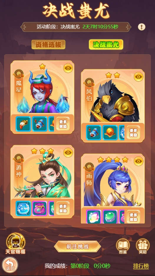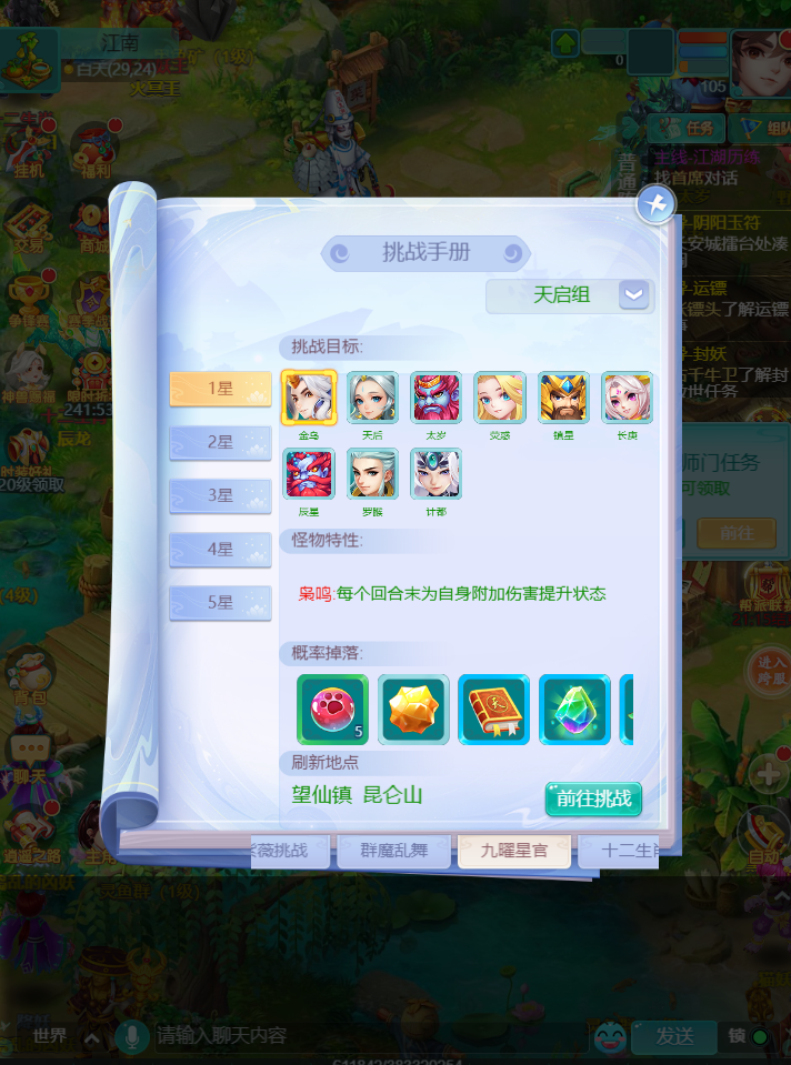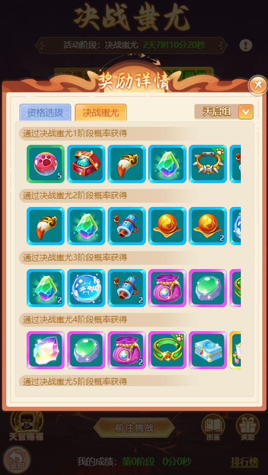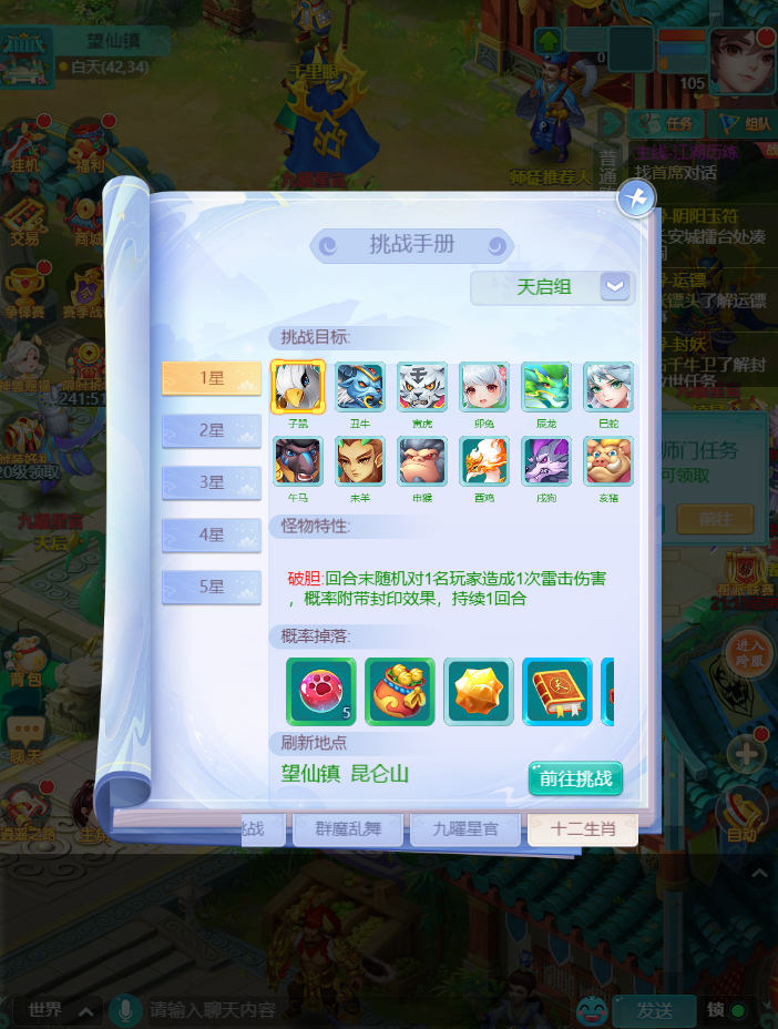 各位少侠晚上好呀 每次到了这个时候 瑶瑶脑子里都是下面这个状态 往往在这种时候 就应该分享点好东西 保留住这一刻的快落~ 决战蚩尤 最新调整 1、新增活动功能界面,可从长安城蚩尤使者处打开 2、可在活动界面处查看各资格选拔关卡和决战蚩尤通关阶段的怪物图鉴和奖励详情 3、资格选拔和决战蚩尤的奖励调整为与玩家所属等级段有关 界面优化大升级!战斗特性清清楚楚,决战蚩尤胜券在握!! 九曜星官 【调整内容】 a.星官挑战根据人物等级将划分为3个等级段,并在指定地图刷新挑战怪物: 65-69级: 刷新地图:长安城、九龙坡 70-89级: 刷新地图:桃花坞、江南 90级及以上: 刷新地图:望仙镇、昆仑山 b.少主请前往符合自身等级的对应地图与对应怪物交互后参与挑战。 c.星官挑战4-5星中将会根据等级段掉落不同等级的玉符阵图。 认准地图带着队友们出发咯! 十二生肖 【调整内容】 a.生肖挑战根据人物等级将划分为3个等级段,并在指定地图刷新挑战怪物: 60-69级: 刷新地图:长安城、九龙坡 70-89级: 刷新地图:桃花坞、江南 90级及以上: 刷新地图:望仙镇、昆仑山 b.少主请前往符合自身等级的对应地图与对应怪物交互后参与挑战。 怪物情报已解锁!提前部署战术,让胜利手到擒来! 编辑:月光下完美