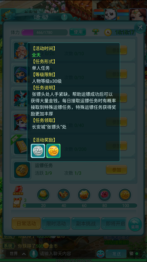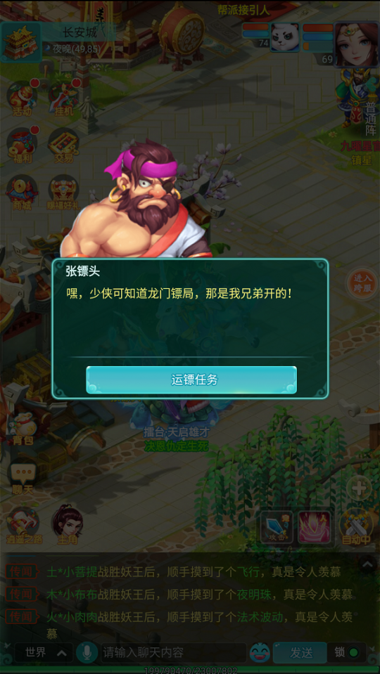 快递员是现代这个网络经济发达的时代所不可或缺的一种职业,但其实在古代也有快递员的老祖宗,那就是镖师。古代治安很差,当镖师还要能打才行。今天,我们就来《逍遥情缘》手游做运镖任务,体验一回在古代当快递员的感觉吧。 【接取任务 运送货物】 运镖任务在长安城的张镖头处接取,属于日常任务的一种。想要接取运镖任务很简单,不需要押金也不需要担保,你的任务就是护送一队货物到达目标角色的手中,中间不要被强盗劫走即可。 【货物送达 丰厚奖励】 运镖过程中不可以进行传送,只能靠双腿完成。一天最多可以完成五轮运镖任务,每次都会有大量奖励,是赚钱的不错手段。而且每次完成一趟任务后,可以让系统自动送你回张镖头那里。 【迎战劫匪 特殊运镖】 接取任务之后,如果你发现自己的模型变成一个马车了,那么恭喜你,这是接到特殊镖了。在运特殊镖的过程中,你将受到劫匪的袭击!击败他们吧,特殊镖的奖励可是比一般的运镖更丰厚的。 编辑:月光下完美