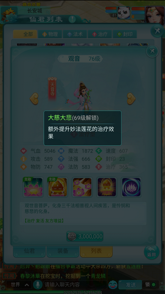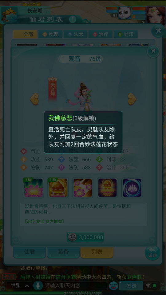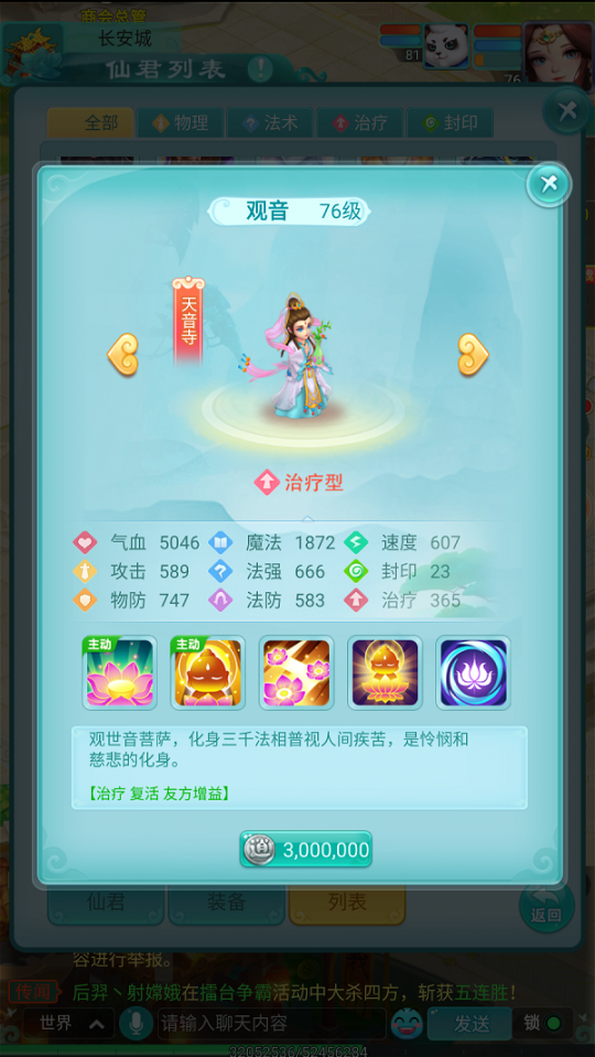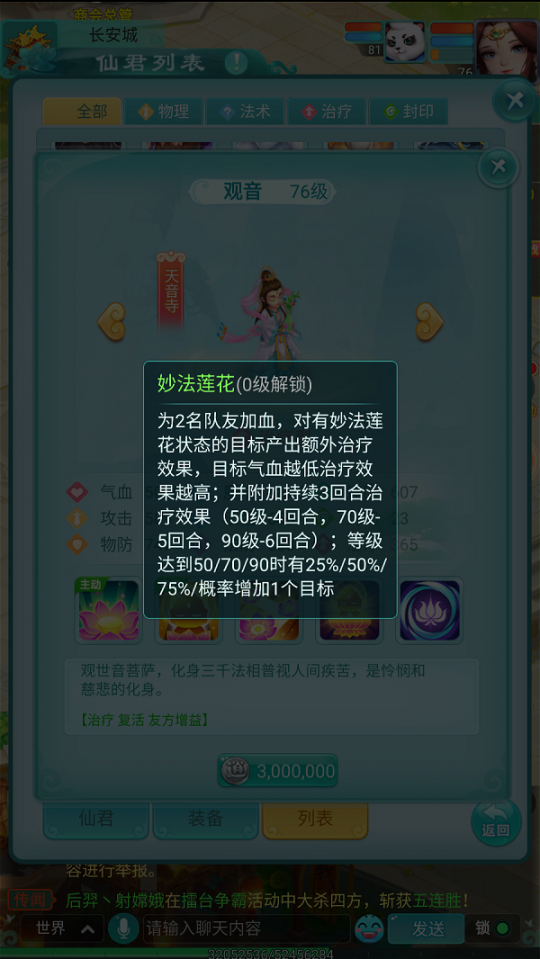 在华夏文化中,观音菩萨一直以慈悲救世的形象深入人心。而今在《逍遥情缘》手游中,她化身成为一位可被少侠招请的仙君,以其无与伦比的治疗能力,成为团队中最可靠的守护者。今日,就让我们一同了解这位救苦救难仙君的非凡能力。 【大士临凡 仁心圣手】 在仙君体系中,观音归属于天音寺这一治疗专精门派。她不仅自身拥有卓越的生存能力,更具备强大的团队治疗与复活技能,堪称最专业的"奶妈"。有她在阵中,整个队伍的生存能力都将获得质的飞跃。 【起死回生 普渡慈航】 "我佛慈悲"是观音的核心复活技能,少侠在初始阶段即可使用。该技能不仅能立即复活一名倒下的队友,并恢复其部分气血,还会附加持续两回合的"妙法莲花"状态,使目标每回合自动回复生命值,实现持续恢复。 "妙法莲花"作为观音的主要治疗手段,可同时为两名队友恢复气血。若目标已携带"妙法莲花"状态(如被"我佛慈悲"复活者),则将获得额外治疗加成。特别值得一提的是,该技能对气血越低的目标效果越显著,堪称危急时刻的救命绝技。 观音的三个被动技能同样各具特色,分别能扩展"妙法莲花"的作用目标数量,并显著提升其治疗成效。虽然她不具备攻击能力,但以其顶级的治疗与辅助性能,绝对是任何挑战性战斗中不可或缺的重要伙伴。 编辑:月光下完美