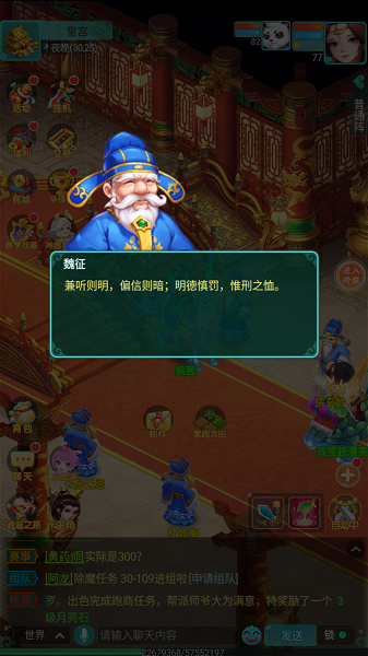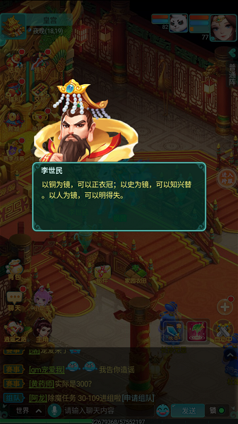 在现实中,紫禁城虽对游客开放,但那份百官朝拜、共商国是的庄严氛围却已难寻觅。然而在《逍遥情缘》手游里,你不仅能亲身踏入皇宫大殿,更可与唐皇李世民及一众名臣面对面交流,体验盛唐时期议政论道的非凡经历。 【盛世皇宫 气象万千】 皇宫坐落于长安城中心最宏伟的建筑群中,内部装饰完美还原了唐代宫廷的华美风貌。宽大的猩红地毯从殿门直铺至御座之下,两侧梁柱雕龙画凤,金碧辉煌的布局尽显大唐盛世的皇家威仪。 站在大殿尽头的正是千古明君李世民。这位开创贞观之治的帝王以善于纳谏闻名,与他对话时,你能深切感受到这位君主"以史为鉴"的治国智慧与海纳百川的胸襟。 【名臣云集 共治天下】 殿中除了皇帝,更聚集了贞观年间的众多贤臣。以直谏著称的魏征立于御前,这位名相以敢于犯颜直谏而青史留名,正是他的刚正不阿,才让李世民少犯许多过错,共同开创了盛世局面。 身为国舅的长孙无忌同样地位尊崇,其妹便是历史上著名的长孙皇后。此外,你还能在殿中寻得杜如晦、房玄龄等旷世名臣。来逍遥世界的皇宫拜访一趟,将让你对那段辉煌历史有更生动的了解。 编辑:月光下完美