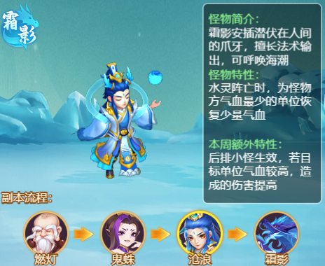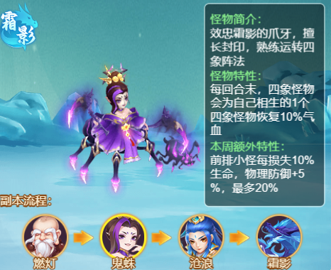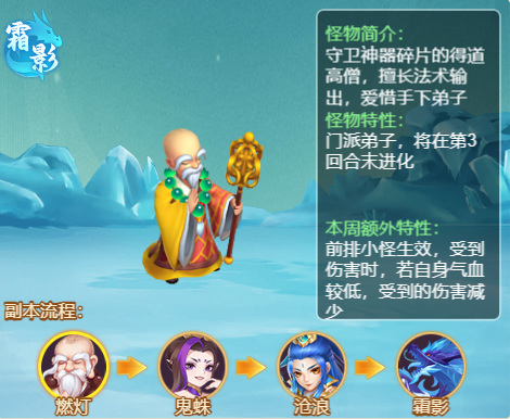 11月11日,逍遥情缘手游85级新副本挑战玩法“万妖劫世”正式上线。该副本共有"煌焰燎原"、"凛冬终幕"两个副本,副本类型将在每周一进行轮换。下面就为大家介绍一下"凛冬终幕"这个副本。 凛冬终幕第一关 守卫神器碎片的得道高僧,擅长法术输出 主怪特性 主怪特性 随机特性 奖励 第二关 效忠霜影的爪牙,擅长封印,熟练运转四象阵法 主怪特性 主怪特性 随机特性 奖励 第三关 霜影安插潜伏在人间的爪牙,擅长法术输出,可呼唤海潮 主怪特性 主怪特性 随机特性 奖励 第四关 执掌极寒之息的妖主,同时具备强大的物理法术输出能力! 主怪特性 主怪特性 随机特性 神器图鉴 烈阳珠的神器效果是使用攻击技能时可进行1次连击,试想一下如果场内都是物宠... 奖励 两个副本的排行奖励与兑换商城都是一样的哦!以上仅为爆料版本,请以正式上线内容为准哦! 编辑:月光下完美