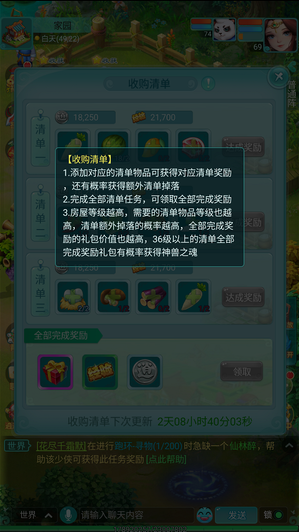 许多少侠都和我一样,每天登陆《逍遥情缘》手游后,第一件事就是回到温馨的家园“收菜”。一键收获再一键播种,过程轻松惬意。不过,在播种前最好先去找找家园里的“收购货商”瞧上一眼,然后根据他的需求进行针对性种植,这样往往能领取额外奖励,让你“种菜”的回报大幅提升。 【按需收购 清单指引】 收购货商是家园中的一位胖乎乎的商人,他专门收购少侠们种出的农产品。但他并非来者不拒,而是会提供一份清晰的“收购清单”。只有按照清单上的具体要求来种植并交货,他才会欣然买单。 将清单上指定的农产品交给收购货商后,你将获得远比直接出售农产品更丰厚的银币和经验奖励。更惊喜的是,在完成清单时还有概率额外掉落新的清单,形成良性循环,让你的种植收益水涨船高。 【满额回馈 惊喜礼包】 如果你完成了一期清单内的全部收购任务,便可领取一份“全部完成奖励”,其中包含额外的银币、经验以及一个惊喜礼包。因此,强烈建议少侠们在决定种植什么之前,先来货商这里看看清单,做到有的放矢。 随着你的房屋等级提升,收购清单上所需农产品的等级也会相应提高,同时额外掉落清单的概率也会增加。特别值得注意的是,完成36级以上的高级清单后,其满额奖励礼包中甚至有机会开出“神兽之魂”这样的顶级宝物,绝对值得你为此精心规划。 编辑:月光下完美