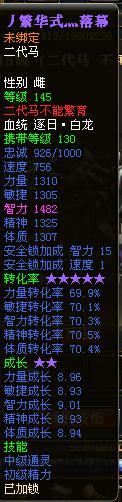 3 、砸星篇 1- 6星:很简单,1 颗上1 ,1颗上2 ,2颗上3 ,签名保护。3上4 ,一颗普粹,4上5 ,3颗,5上6 ,4颗。还有5上6 ,怕的话,点优先使用银子,个人尝试过,可行。 6 - 8 :6 上7,一颗一颗慢慢上,基本上10颗左右就可以了。7上8 ,个人喜欢取消法,4颗普粹上8 ,但是,进度条没到终点时,装备拿下,连续7、8 次这样点,成功率高。 8上9:这是个关键,拿出6星,带六星签名保护的。装备上7 ,一颗普粹,失败7 到8次,立马拿出8星装备,4 颗高粹,直接上9 。我的两个小技巧:一 ,凌晨2 到3点;二,监狱砸星,成功率高。亲自测试,我就是在监狱达成九星耀龙的。 还有个办法,7 上8 ,2颗中萃,上就4颗高等上。没上,但是没掉星,4颗中萃上8 。8上9 ,4颗高粹上9 ,失败,再进行这种办法,一般人品只要不是太差,3次就能上9了。 4 、马匹篇 生马:我就生过4-3 一匹,4-2的3匹。生马我的技巧就是,凌晨过了12点,或者早上生。生之前喂一件低级紫装,出好马几率大! 现在的马原来是自己生的4-2 ,出了马匹强化,花了没多少钱就紫马了。后来生个4-2 的卢,照样强化,变5-2 ,卖了点钱。 5 、 赚钱篇:玩企鹅游戏,大家都懂的,别沉迷,别执着。少浪费,多抠门点,什么祈福,许愿,开礼包,偶尔一次就行,不然最后亏的是自己。还有,想赚钱,倒卖倒卖,钱就这么来的。本人赚了少说也有1000锭银子 。有机会,再详细谈谈怎么赚,希望大家都能玩的开心。 叶子猪记者——一千只纸鹤 (为感谢广大玩家对叶子猪御龙在天的支持,特在专区文章放出本次大受欢迎和喜爱的叶子猪专属礼包CDK。每日某篇文章的某一页或某一段会放出1个CDK,请留意查找,拿到的童鞋记得回来留个言哟!)CDK:ANVYLAAABKJKyyfv |