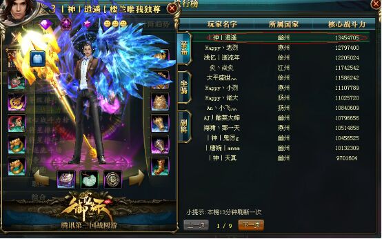 TOP13 游戏名 :丨神丨逍遥 服务器 :傲视天下 战斗力 :13454705