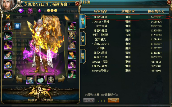 TOP9 游戏名 :丿Dream丶枭雄 服务器 :霸者风云 战斗力 :14169404