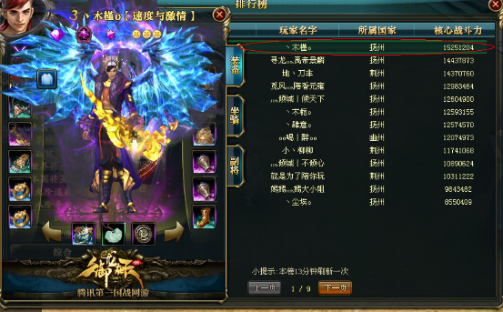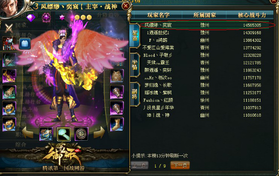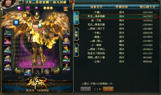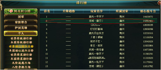 TOP2 游戏名 :a等待合区 (辉煌) 服务器 :九州皇图 战斗力 :14960916