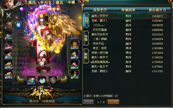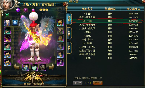 TOP11 游戏名 :F丶z鸿鹄 (原月光号) 服务器 :龙啸九州 战斗力 :13864302