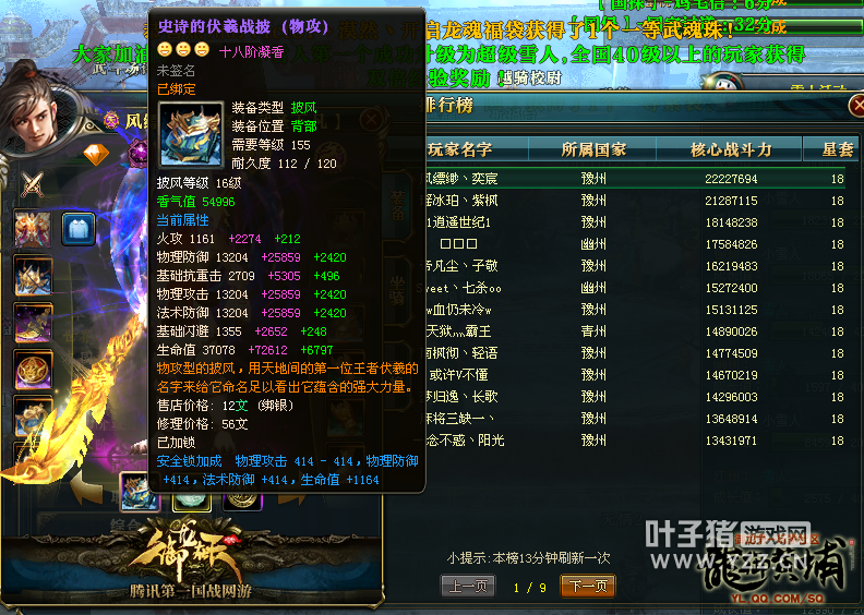 神器之三——披风 披风算是不老不新的装备配置,位于装备背部,可以提升等阶和刷新技能,如今最强披风到达十八阶凝香,史诗级别,增加的属性也是非常惊人,所以御龙中的神豪们才会将自身披风做得尽善尽美,不愿意留下一丝遗憾,即使投入重金也不在乎。