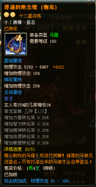 作为一款经历了数载时间的游戏,御龙在天的性质以及玩法早已不复往日,依稀记得当初真正的绿6走天下紫九是大神的时代,再看如今,紫九已是最低层次,绿6早已随风消逝紫色12更是地摊货,就连从前凤毛麟角的18也随处可见,不得不感叹御龙变化之大。 现在御龙经过不断的更新已经完成了游戏从质到量的改变,彻底加大了游戏里的贫富差距,宝石的加工以及宝石孔的改造还有接二连三的黄金人物装备的诞生,还有前段时间刚推出的橙色人物装备祈福以及橙色马庄的祈福让大众玩家还没的来消化就已经被御龙的潮流所淹没,再也跟不上御龙进化的脚步。正当一些小资玩家埋头努力向橙套前进时,新变化黄金马庄又伴随着消费活动再度推出,虽然只是全服消费第一才能拿到这个黄金马庄精源,但仍然惊呆了所有御龙玩家,收获了无数掉落在地的眼球。 然后似乎觉得计划赶不上进度,官方再出一杀手锏黄金马庄精源不再拘泥于消费榜之内了,它将出现在专刷珍惜道具的珍宝阁之中,这次举动取得效果无疑是很成功的。在2.14刚更新后的首天,青龙战区已经有众多的土豪开刷黄金马庄精源,都想早日穿戴起一身的黄金马庄。但是黄金马庄精源岂是那么容易刷出来的?目前全服运气最好的也就只刷出了两件黄金马庄精源而且价格更是不菲,不算刷新道具所花的金子单指精源就已经到1900RMB。一套黄金马庄下来加上刷新花费的金子运气好的差不多就需要2W多的RMB ,运气不好的我只能说呵呵哒了。 相比较橙色马庄来说,黄金马庄在百分比上增加了百分之4以及1000多的物理攻击,除去套装效果换算下来一件增加不到2000多的攻击力却需要2000的RMB,真是让普通玩家难以接受,已经超出了大部分玩家的消费水平,只能望其兴叹了! 但土豪玩家不在乎啊,从之前各种的活动就可以看出,一些土豪为了追求游戏的强大是不会在意花费多少金钱的。当他们成功买到一身的黄金马庄之后加上人物以及副将身上的黄金装备,粗略算下来都是20多万,对一些御龙玩家来说就是一年的工资,如今却体现在了游戏了,这种反差真的是让小编都觉得心慌。由此可见御龙在天耀眼的“土豪金”时代即将来临了,你们做好准备了吗? 编辑:叶子猪猪少先队大队长