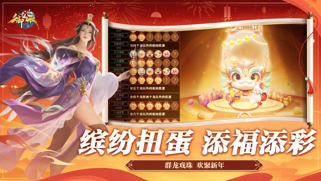 全民砸18星赢18星 龙吟贺岁,淬炼神兵!2024新年御龙淬星大赛正式开启,全民零门槛免费领取海量淬星石,挑战爽快又刺激的砸星比赛;龙年究竟哪位将军技高一筹圆梦18星,成为御龙最强淬星大师,赢取iPhone 15、18星卷轴等超豪华大奖,让我们拭目以待! 2024年1月23 12点起,将军每日上线即可获得淬星币,购买专属淬星道具,淬炼神龙装备。星级越高、达成速度越快,将在排行榜上获得越高名次,赢取iPhone 15、iPad、18星强化卷轴、黄金飞马、十一周年·淬星大师永久称号等至尊大奖! 龙年萌兽拜年