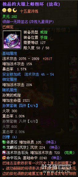 双线五区王者傲视幽州——领御一无限,经过不懈努力,终于砸好了15星,40天绿时装,全身极品紫,神圣石头,装备还是很不错的!