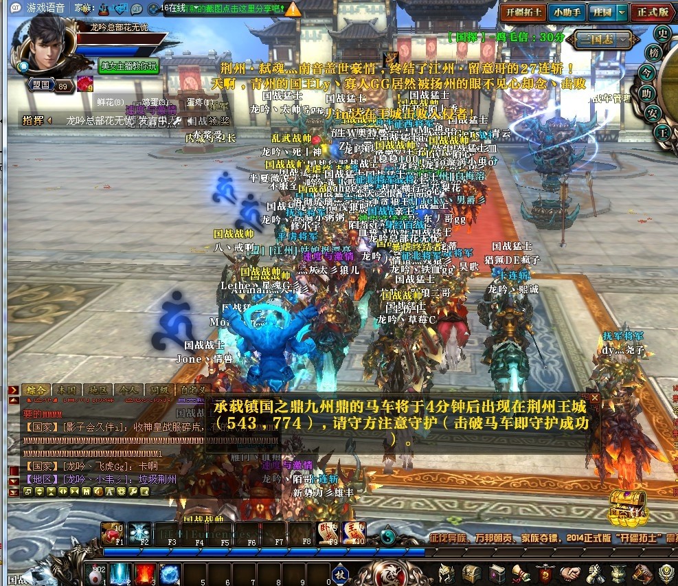 《一马当先》的强强对话又一次激情上演,由龙吟花无忧指挥的扬州艰难拿下荆州,取得扬荆之战的首胜。连日来的龙吟天下捷报频传,可谓多喜临门。由龙吟紫云率队进驻的《虎踞龙盘》服务器在险胜扬州的情况下成功拿到第九个鼎,成为了九鼎公。《一马当先》更是战胜强大的荆州,取得首回合的胜利。 如果朋友们有关注《御龙在天》的最新消息的话,一定会有留意到这么一条新闻。在龙吟无双太子成功砸到15X套的几天之后,荆州的一位大神也成功砸到15X套。并且这两位大神在某个时间里还交流了一番上星心得。 荆州除了有一个15X套之外,还有部分12X套。这个高战实力会是我们扬州最大的阻力,想要取得胜利,就要比对面多出更多的战斗力。可喜的是,在我们龙吟无双太子成功砸到15X套之后,龙吟天下又一位大神再次成功砸到15X套,他就是我们的神豪龙吟公子哥(逸晨)。 由于扬州众多高战同时参战,士气方面还是略胜一筹。但是由于双方实力相差不多,龙吟天下指挥花无忧在战前就部署了详细的作战计划,争取一鼓作气拿下荆州。国战双方的参战人数都非常多,国民战斗力极强。 双方势均力敌,龙吟花无忧果断改变作战计划。扬州战士们多处攻击根据地,分散敌人的作战力,让他们顾此失彼。 最终扬州在这次的强强对话中取得了胜利,龙吟花无忧再次变身,扭转战局。 |