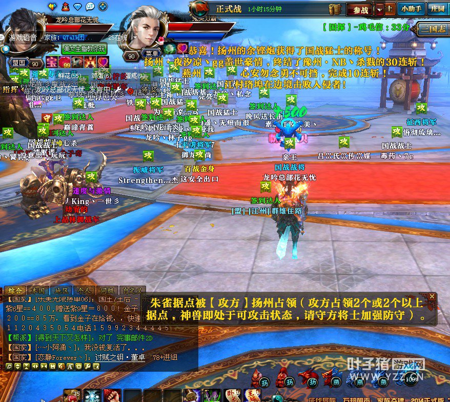 《一马当先》扬州再次迎来国战,本次的对手是两个国家,分别是豫州和燕州。最近《一马当先》的局势有所变化,豫州由一个弱国一跃成为仅次于扬州的强国。虽然期间被扬州无限国砸使得部分豫州国民逐渐转国或退服,但是有大部分的高战依然坚守在豫州,实力不容小视。而豫州的同盟燕州是一股新势力,来势汹汹,也有一定的实力。但最终扬州在龙吟花无忧的指挥下获胜,国战取得十连胜,无一败绩。